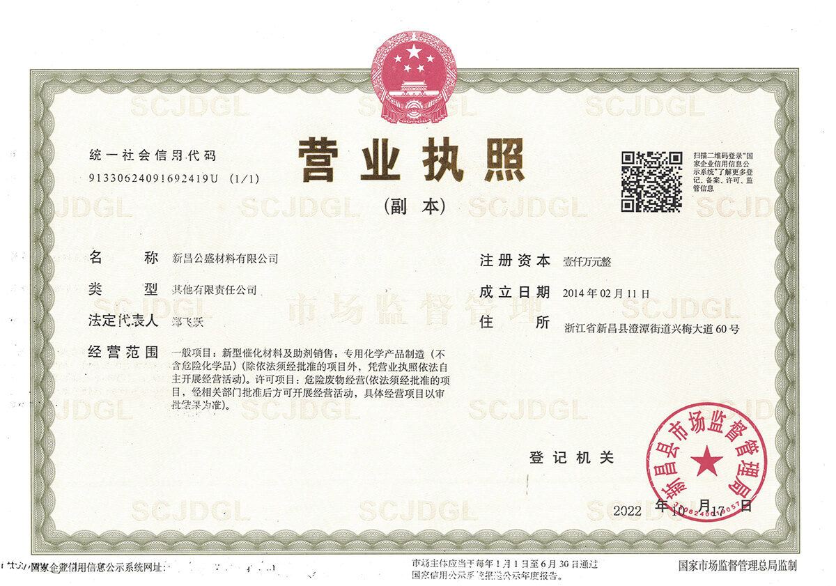 新昌公盛材料有限公司成立于2014年,坐落在江南大佛名城浙江新昌,地理位置優(yōu)越,交通便利,并配備有現(xiàn)代化的廠房和實驗樓,總占地面積80畝。公司聚焦于研發(fā)和生產(chǎn)用于醫(yī)藥、農(nóng)藥、染料、材料等精細(xì)化工領(lǐng)域的貴金屬催化劑。目前主要從事鈀炭、鉑炭、釕炭等多項催化劑及醋酸鈀、DPPF二氯化鈀、雙三苯基膦二氯化鈀、四三苯基膦鈀、DBA鈀等均相催化劑的研發(fā)、生產(chǎn)、銷售以及失效鈀、失效鉑催化劑的回收再加工等業(yè)務(wù)。公司成立以來,一直以提升客戶產(chǎn)品的競爭力為經(jīng)營宗旨,通過持續(xù)改進客戶所用催化劑的性能,來提高客戶產(chǎn)品的收率,提高催化劑的套用次數(shù),提高失效催化劑的貴金屬回收率,來降低客戶產(chǎn)品中貴金屬催化劑的成本,進而提升客戶產(chǎn)品的競爭力。